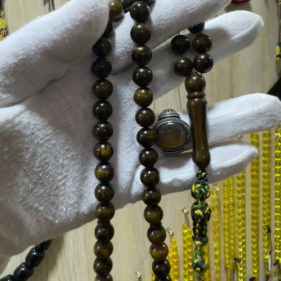 🌟 بلون مميز بعدد 51 خرزة مقاس 9.5 ملي بوزن 36 غرام مزين بكركوش محبوك يدويا من اجود الخيوط من تفصالنا الخاص واسم حفر ليزر او شعارك المفضل .