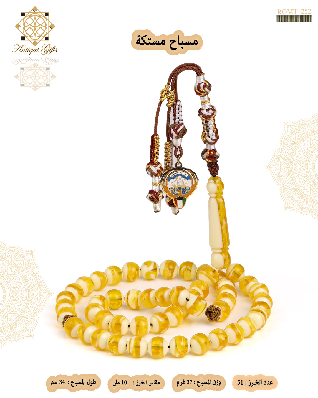 مسباح منحوت من  المستكة بلون كهرماني مميز