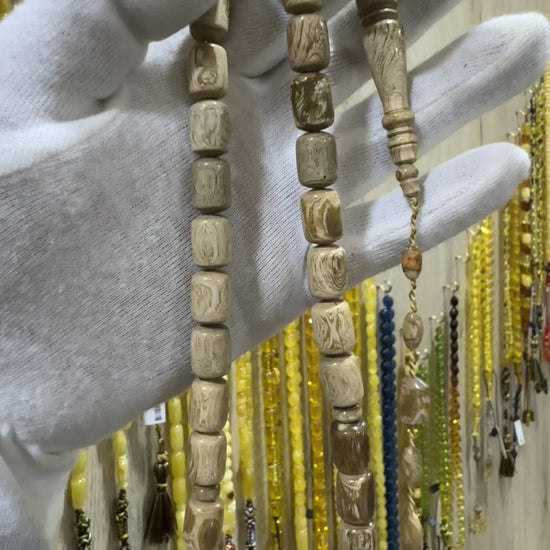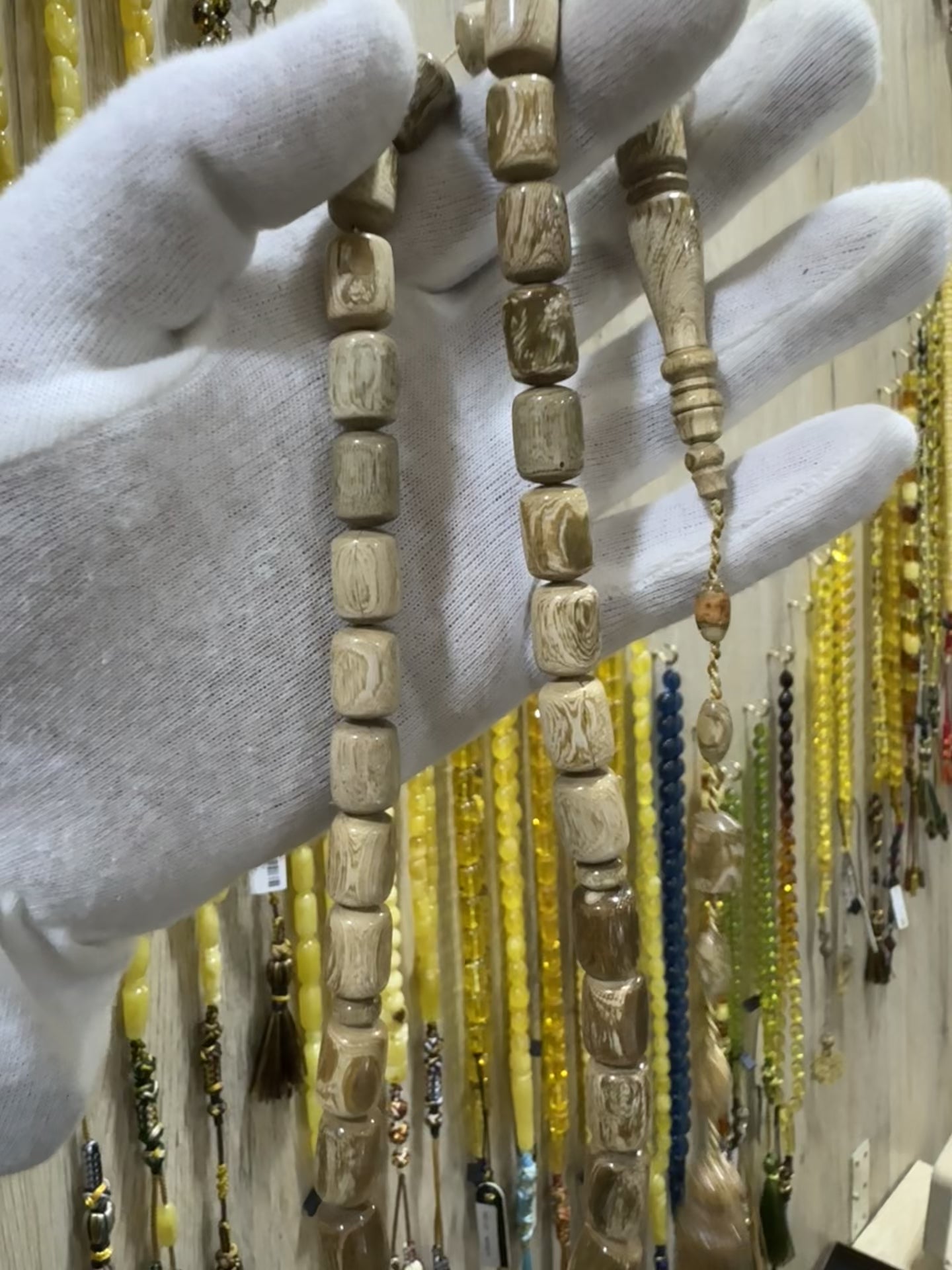 مسباح من ( اليسر الطبيعي ) المستخرج من البحر الاحمر بعدد 33 خرزة صنوبرية وزن 71 مقاس 14.5*10.5 ملي مزين بطقم تمليكة فاخر