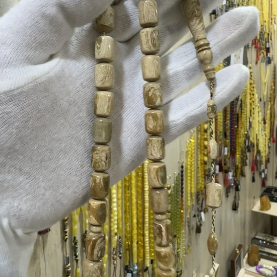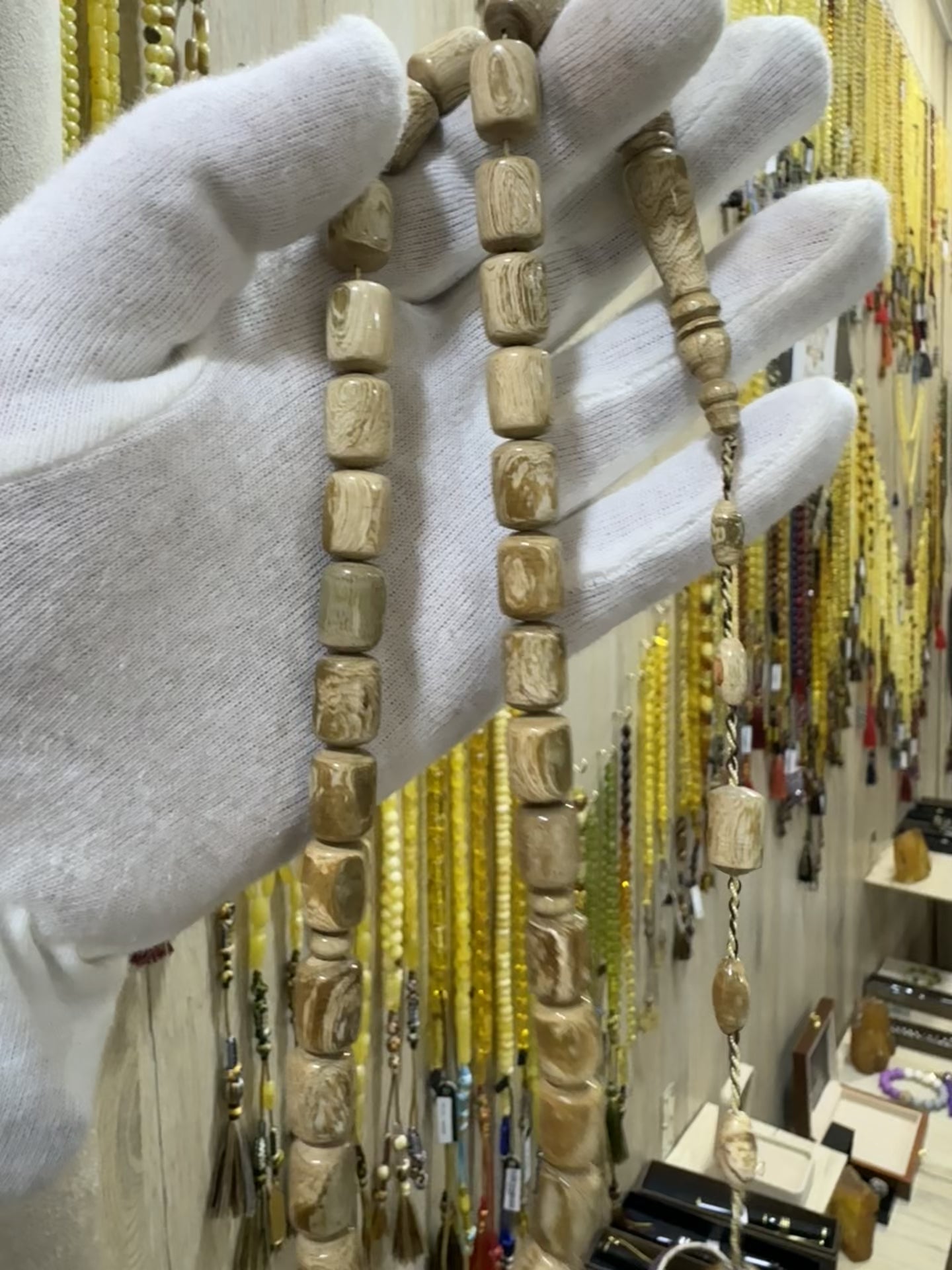 مسباح من ( اليسر الطبيعي ) المستخرج من البحر الاحمر بعدد 33 خرزة صندوقية وزن 71 مقاس 14*10.5 ملي مزين بطقم تمليكة فاخر