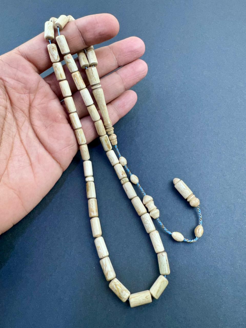 مسباح من ( اليسر الطبيعي ) المستخرج من البحر الاحمر بعدد 39 خرزة صنوبرية وزن 32 مقاس 6*12.5 طول 29 سم ملي مزين بطقم تمليكة فاخر